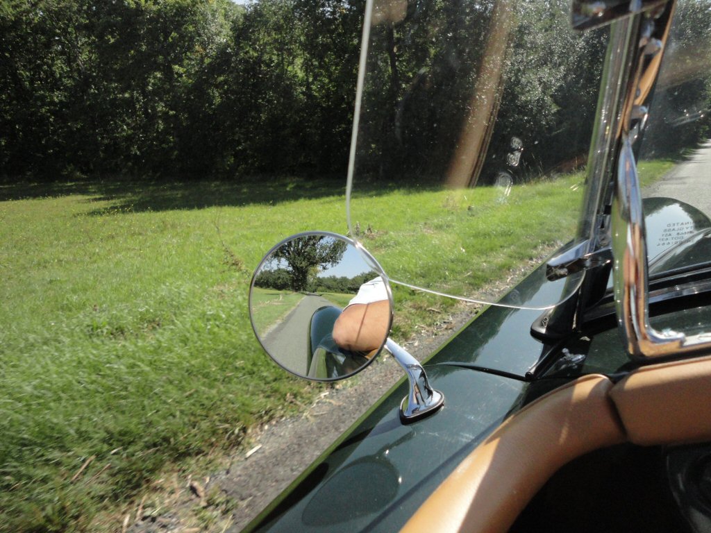 Il est vrai qu’il ne s’agissait pas d’un accessoire monté en série à l’usine, mais plutôt à la main des concessionnaires de l’époque. Dans les années cinquante et jusqu’aux années soixante, la mode était à une installation sur l’aile avant, à peu près au dessus du passage de roue. D’ailleurs on parlait de "Wing mirror". Paraît-il que cela contribuait à améliorer le style général, en procurant une allure plus allongée au capot avant. Bof. J’aurais plutôt un avis opposé, cette localisation coupe le galbe de l’aile et en plus, on a l’impression que la MGA va devoir tracter une caravane ! En outre, avec une petite surface de miroir aussi loin du conducteur, il faut avoir une bonne vue ! Et inutile d’espérer pouvoir régler le rétro en route depuis le siège conducteur, l’opération ne peut être effectuée qu’à l’arrêt et de préférence avec l’aide d’une tierce personne. Dernier inconvénient - et non des moindres - cette position sur l'aile complique les interventions sous le capot-moteur, lorsqu'il faut intervenir en se penchant sur l'aile avant. La place est déjà mesurée quand on ouvre le capot de la MGA, alors rajouter un accessoire sur l'aile qui risque facilement d'être endommagé complique singulièrement les interventions mécaniques.