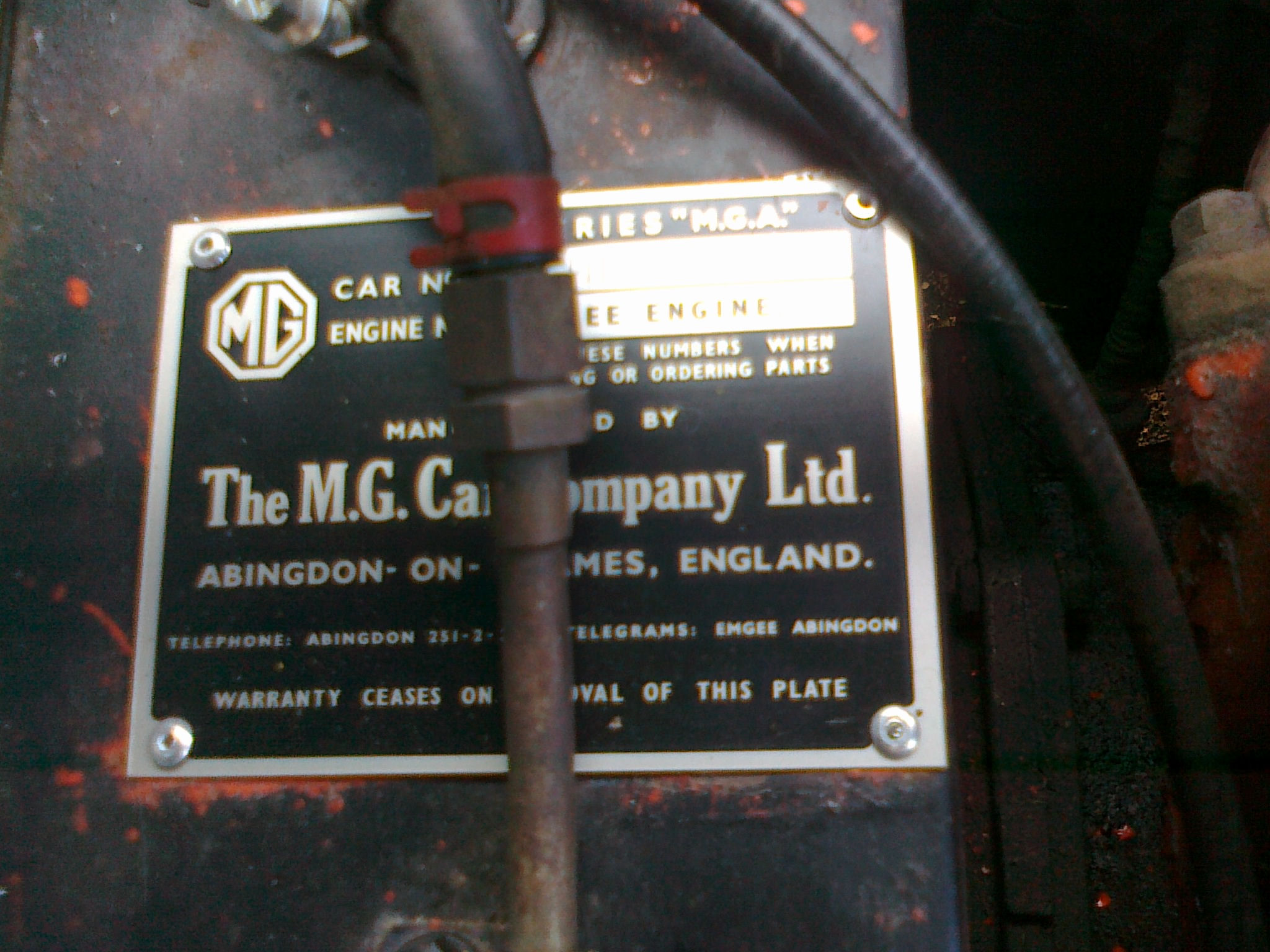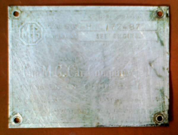 Si cette plaque est neuve, ou s’il y a doute... il est parfois possible de vérifier la cohérence du n° de série avec le n° gravé sur un rail de châssis, mais il faut pour cela que cet endroit soit accessible, et que ce n° soit toujours présent malgré les restaurations successives. Ce qui est peu fréquent. Et ce n’est pas forcément un point très important, nombre de MGA ont connu des changements de châssis lors de certaines restaurations. La quête des "matching numbers" n’est pas forcément utile pour des voitures qui ne sont pas considérées comme "haut de gamme".