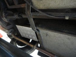 Nous allons maintenant voir de près les dessous de notre promise... Il est pratique de pouvoir mettre la voiture sur un pont élévateur ou au dessus d’une fosse, mais ceci n’est pas toujours possible, même chez certains vendeurs professionnels... au pire, un cric bien placé permet de voir quelques détails, mais ce n’est pas aussi efficace.